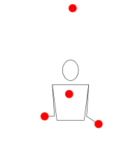 As you can see, higher numbers are higher throws, which means a longer beat (a time unit that is relative to the type of throw). Another interesting note is that odd numbers always cross hands, while even numbers are always thrown to the same hand. So for a basic pattern, when you see someone juggling an even number of objects, he/she is actually juggling half of those objects in one hand and half in the other; the objects never actually switch hands, even though they may appear to at first.
