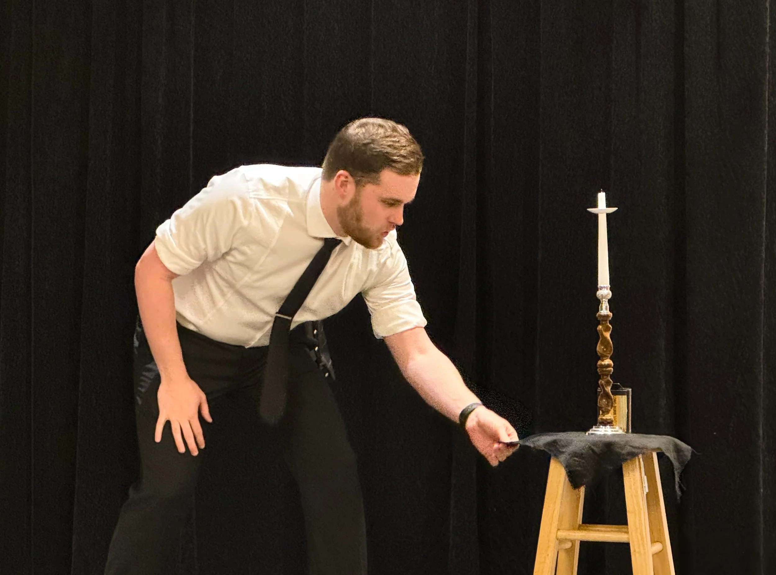 Several weeks before, Paul and I had decided that my newest act, the candlestick, would do the job. Its music is welcoming, the fire gets them sitting up and paying attention, then the act builds to a big finish that has the crowd loud and excited right as the show is kicking into gear. At least, that was the goal! On the ride up, Paul and I worked through the details of how the show would run; after I introduced him, I’d be his assistant backstage, helping other performers—a children’s magician, mentalist, comedian, and a Branson stage illusionist—move props on and offstage, make sure people are ready and on-time, and put out inevitable backstage fires (I meant this figuratively, but my act wasn’t even the only one that involved an open flame, so I guess I was prepared for literal ones too). I’d also do a rope routine to fill time while they set the stage for the closing act.